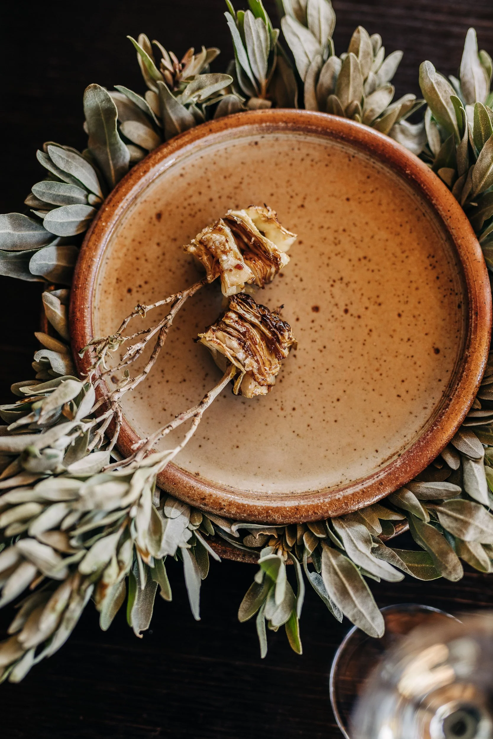 Intimate setting amongst the wine barrels at MR. Barval, set menu with hyper-local produce.